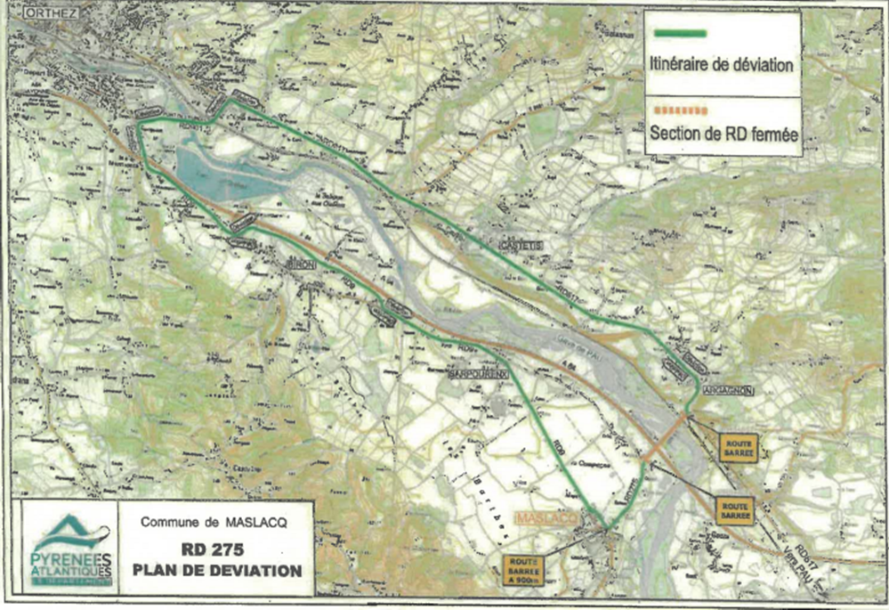 - la R.D. 275, la RD 817, la RD 901, et la RD 9 la RD 275, via le territoire des communes de MASLACQ et d’ARGAGNON,